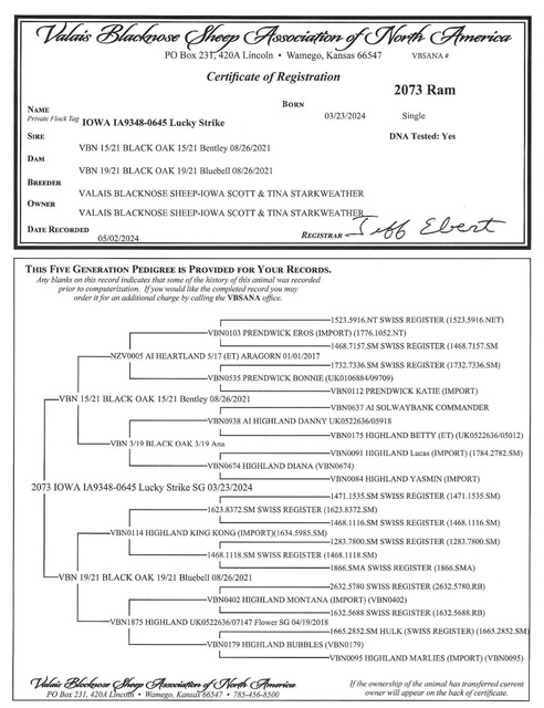 - Second in his class behind Iowa Kevin at the 2024 USA National Valais Blacknose Show