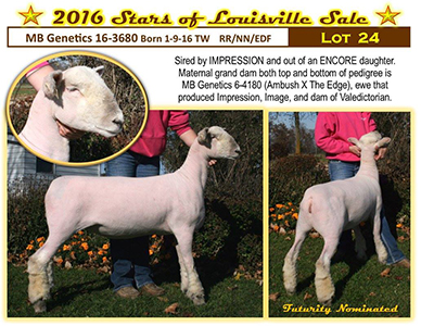 The “M” ewe, is the matriarch of Prairieland Farms. No other female in our flock has been more instrumental in the advancement of our ewe base. You may recognize some of her stand out daughters and granddaughters we have sold over the years.
