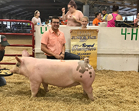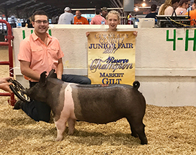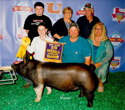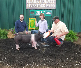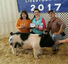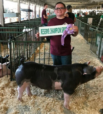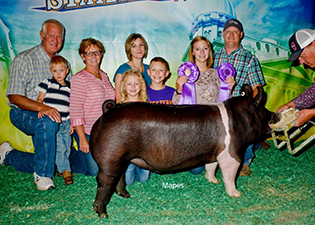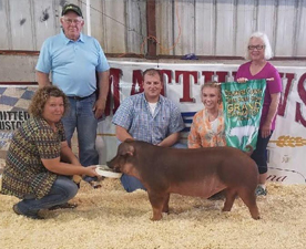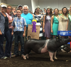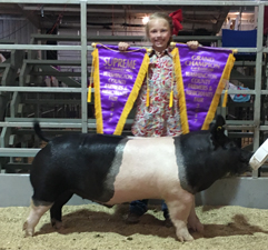 ![]() Grand Champion Hampshire Barrow Shown by Ella Mauck |