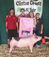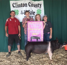![]() Reserve Grand Champion Barrow 2017 Clinton County Fair Bred by Moore Showpigs |