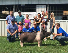 ![]() Reserve Grand Champion Barrow 2017 Starke County Fair, IN Bred & Shown by Belle Bennett Sired by I’m The Man |