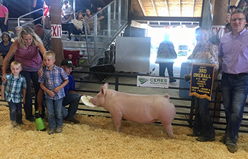 ![]() Supreme Champion Overall Gilt 2017 Muscatine County Fair Bred by Cox Family Sired by Detour |