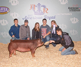![]() Reserve Champion Duroc Barrow 2017 American Royal Sired by Born Again Shown by Kellen Lawson Bred by Chad Day Showpigs |
