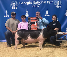 ![]() Reserve Champion Barrow 2017 Oglethorpe Winter Livestock Show, GA Sired by Rule 51 |
