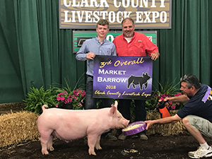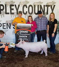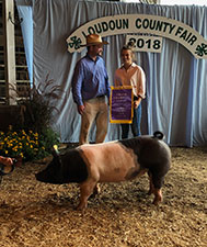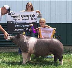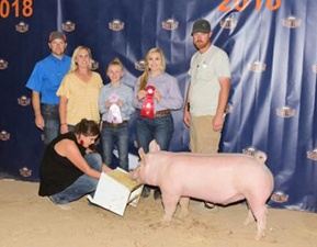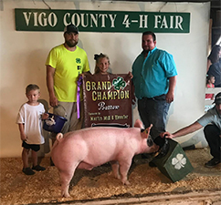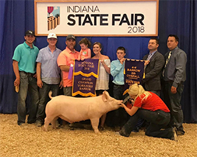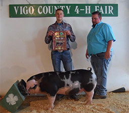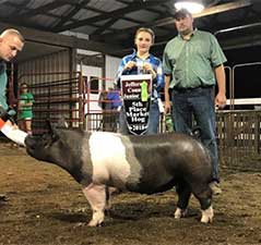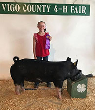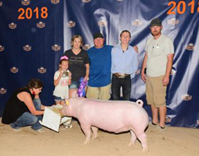 ![]() Grand Champion Barrow Overall 2018 Vigo County Fair, IN Shown by Ali Evans |