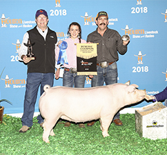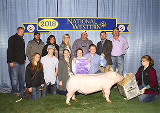 ![]() Champion Yorkshire 2018 National Western Stock Show Shown by Jayce Morgan Bred by Chad Day Showpigs Sired by Sit Tight |