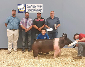 ![]() Champion Duroc Barrow 2018 Lubbock Co. Jr. Livestock Show, TX Shown by Lathe Benavides |