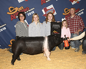 4th Overall Landrace Gilt 2018 San Antonio Stock Show Grand Champion Landrace Gilt 2018 San Antonio Stock Show Open Show Shown by Riley Hardin |