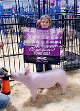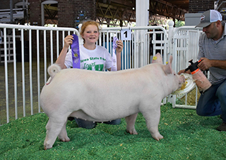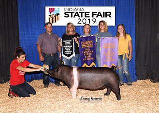Grand Champion Barrow & Champion Crossbred 2019 Tipton County Fair, IN Shown by Brooklyn Day Bred by Chad Day Showpigs Sired by Get It On |