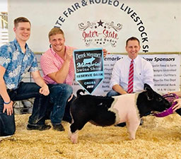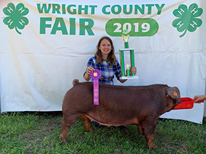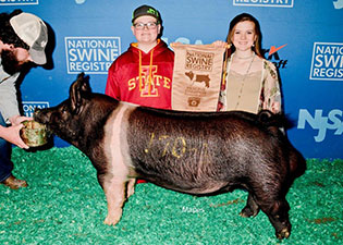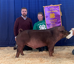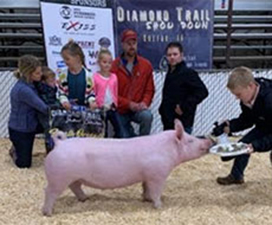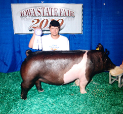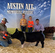 Grand Champion Barrow Overall Grand Champion Purebred Barrow Grand Champion Duroc Barrow 2019 South Dakota State Fair 4-H Show Shown by Wirt Family Bred by Hauger Show Pigs Sired by Unforgettable |