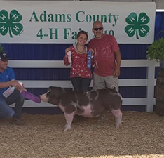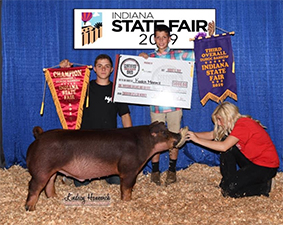3rd Overall Barrow & Champion Spot 2019 Wabash County Fair, IN Bred & Shown by Brice Patrick Sired by Double Time |