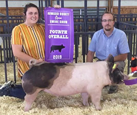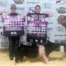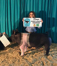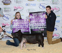 Grand Champion Overall Market Hog & Grand Champion Market Gilt 2019 Hog Wild at Hartford Day 1, OH Shown by Abbey Hemphill Bred by G&S Swine Sired by Solo |