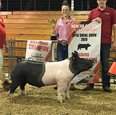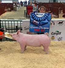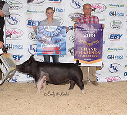 Grand Champion Overall Market Hog Grand Champion Market Gilt 2019 Real McCoy Genetics Jackpot, OH Shown by Abby Hemphill Bred by G&S Swine, OH Sired by Solo |