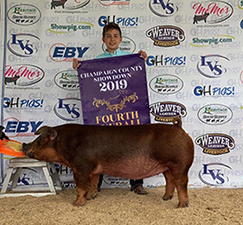 Grand Champion 2019 Calaveras County Fair Bred by WD Swine Farm Sired by Blue Tease |