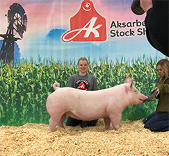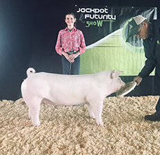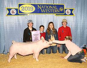 Reserve Champion Yorkshire 2019 National Western Stock Show Shown by Flora Appleton Bred by DJ Sanders Sired by Sit Tight |