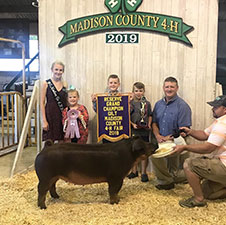 Reserve Grand Champion Gilt Overall 2019 Madison County Fair, IN Shown by Brody Everhart Bred by Clint Thayer Sired by Top It Off |