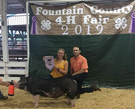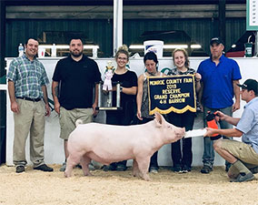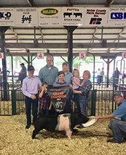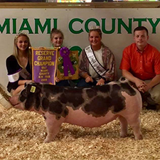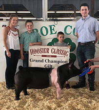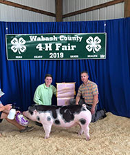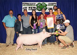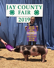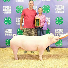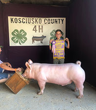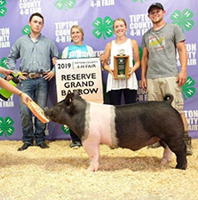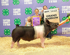 Grand Champion Barrow 2019 Tippecanoe County 4-H Fair Shown by Sophie Royer Bred by Chad Day Showpigs Sired by Novocain |