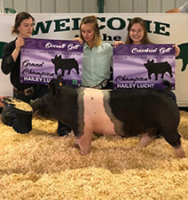 Grand Champion Crossbred Gilt 2019 Iroquois County Fair, IL Shown by Hailey Lucht Bred by Chad Day Showpigs Sired by Get It On |