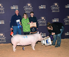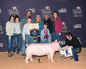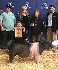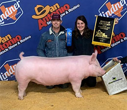 Champion Breeding Gilt 2019 Kendall County, TX Bred by Ben Bobell |