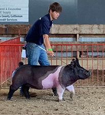 Reserve Champion Purebred Gilt 2019 Cumberland County 4-H Fair Shown by Wyatt Huddleston Bred by Hughes Showpigs, IL Sired by Unforgettable |