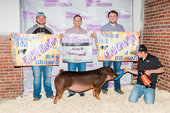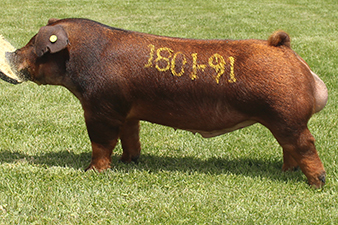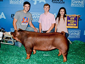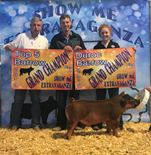 Grand Champion Duroc Barrow Overall Champion FFA Duroc Barrow 2019 Missouri State Fair Shown by Zach Trout Bred by Lance Martin Sired by Unforgettable |