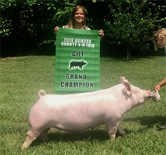 Grand Champion Chester Gilt 2019 Tipton County Fair, IN Shown by Keliah Smith Bred by Chad Day Showpigs Sired by Out of the Box |