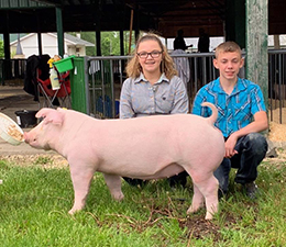 Grand Champion Overall Market Hog Grand Champion Market Gilt Ring A 3rd Overall Market Hog Grand Champion Market Gilt 2019 Madison County Memorial Day Classic, OH Ring B Shown by Abby Hemphill Bred by G&S Swine, OH Sired by Solo |