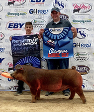 3rd Overall Barrow & Champion Duroc 2019 Southern Illinois Showcase Shown by Logan Beckmier Bred by Logan Farnham Sired by Unforgettable |
