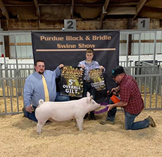 5th Overall & Champion Yorkshire Gilt 2019 Purdue Block & Bridle Swine Show Bred by Malcolm Farms Sired by Sit Tight |
