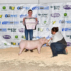 NOTES: Great pedigree here!! Act Up is a littermate to the 5th Overall Landrace Barrow '23 Team Purebred National Jr. Show and 3rd Overall Barrow '23 NJSS, Act Up's mom was Grand Champion Landrace Gilt at the '22 NJSS shown by Brody Everhart and bred by Knauth. |