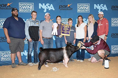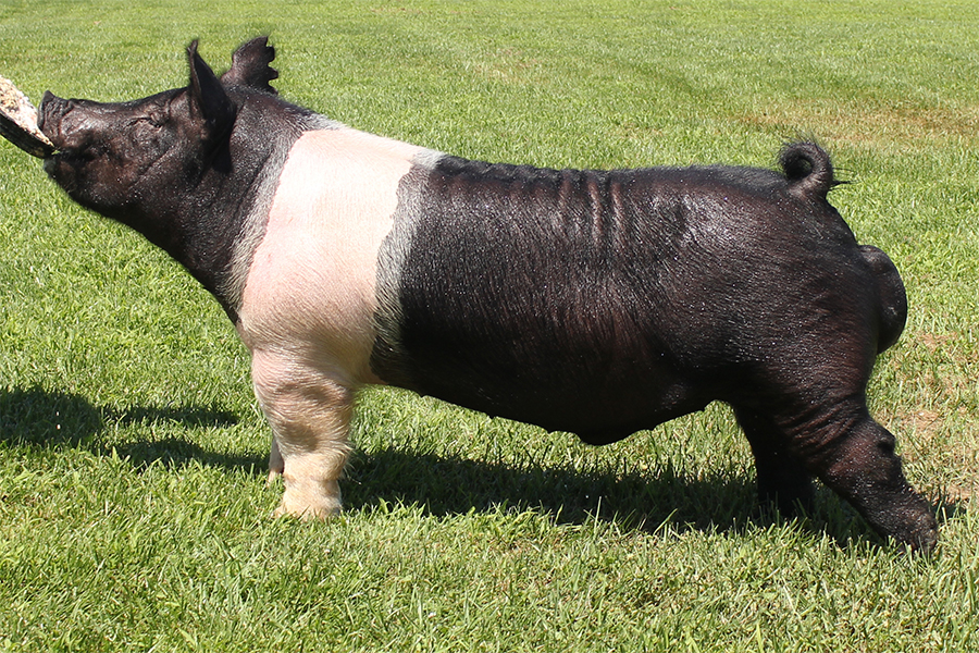 BLIND DRAW FROZEN SEMEN: $100 PER STRAW BREED: Hampshire REGISTRATION NUMBER: 505261010 NOTES: Blind Draw offers us and our customers a different pedigree on the top side. All Day is out of The Program x Busch League. Blind Draw is definitely the power boar in terms of bone, stoutness and overall mass. We feel he will work perfectly on the Own the World and No Limits daughters!! Blind Draw sets down on a huge foot with square even toes with stout bone work. Really opened up starting at the ground both coming and going. He transitions up to a robust center body cavity with a great deal of spread up high that is facilitated by his big rib cage. What makes him undeniably a top tier Hampshire sire is his range of motion and the ability to track with a long stride. With his pedigree and build, in addition to siring competitive Hampshires with a great appetite and production; we feel his pedigree showing up on the bottom side of future generations is where he can truly shine! |