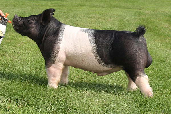 Come & Get It has been one of the most popular boars for visitors on boar tours!! Great pedigree that reads with predictability and quality. Built like his sire but with more look up front and more true back shape. Use with confidence!! |
