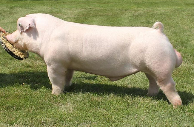 NOTES: Big Time Landrace Boar Here!!! - Huge legs, Stout and Powerful - Tremendous back shape and a big square hip - Wide and square coming and going - Takes a long stride and excels in his soundness and flexibility |