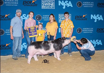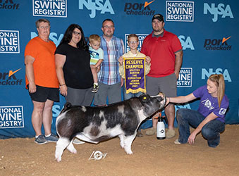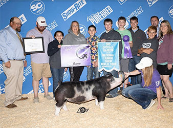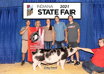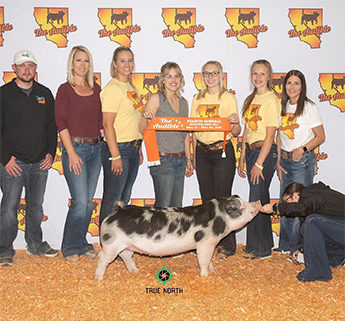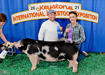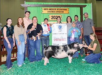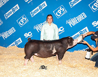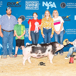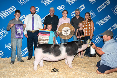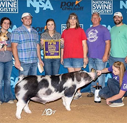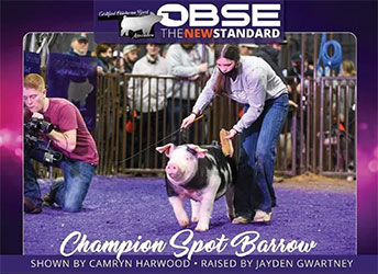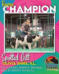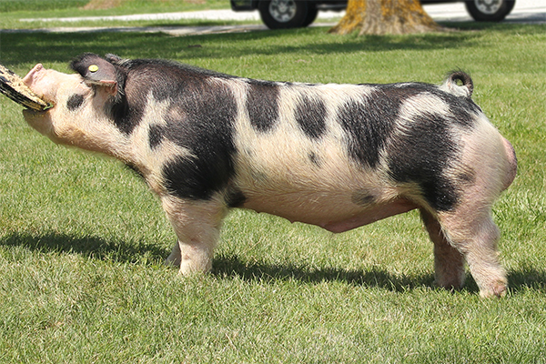 When you see this boar in person there is no question why this one was named Grand Champion Spot Boar at the 2020 Southwest Type Conference. Double Down is so complete and so good everywhere like his sire. His sire Double Time here at Top Cut has been as good and consistent over the years as any Spot boar in the industry. We feel this is the BEST son of Double Time we have seen yet!! Double Down was impressive at the show but even more impressive now as a mature boar. He is so good in terms of look extension up front and build and design. He is extremely sound and flexible and take a big long stride. Double Down excels in his back shape and his big square hip. Use Double Down with confidence to make your next generation of champion Spots!!