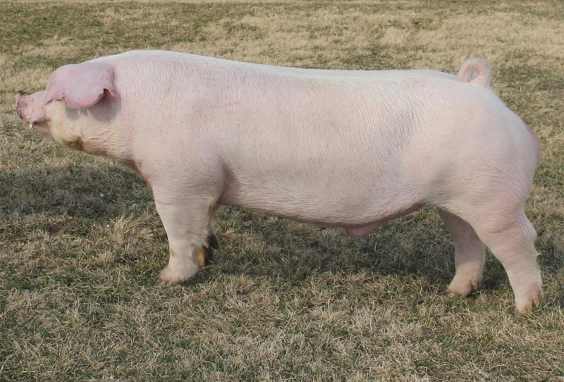 DROP EM Got Em x Bad Cat BREED: Landrace STRESS STATUS: Negative REGISTRATION NUMBER: 137448007 EAR NOTCH: 18-7 BRED BY: Chad Day Showpigs, IN