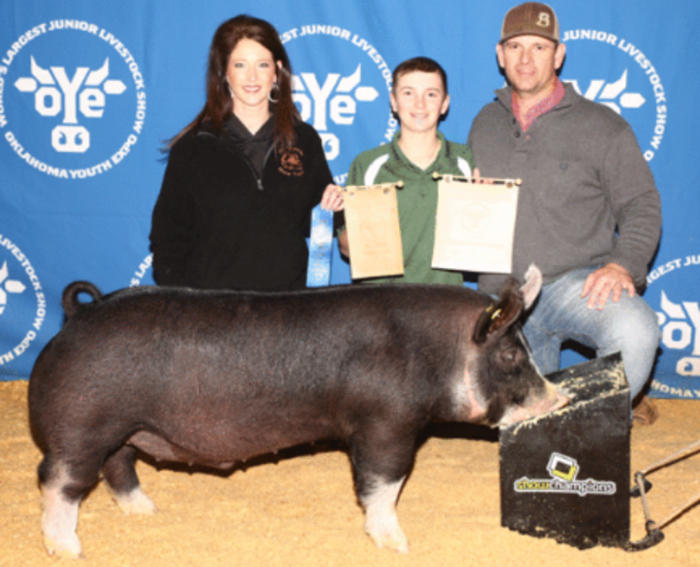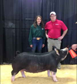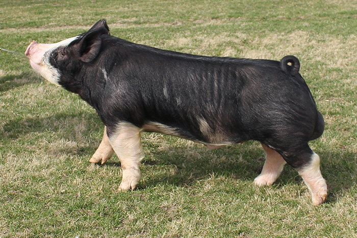 GETTIN LIT NOTES: Big legged, wide made with extra power Big back with great muscle shape Littermate gilt was Res. Champion at NWOSPC Kingfisher Jackpot & Top Ten Berk NWOSPC. Also, Champion Berk Gilt & Grand Gilt at Freedom Stock Show & Champion Berk Gilt at Woods County Stock Show. Littermate barrow was Champion Berk NWOSPC Woodward Day 1 & 5th Overall, Grand Champion Berk & 4th Overall NW District Livestock Show and Top 5 Berk in points on the NWOSPC Show Pig Circuit |