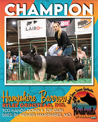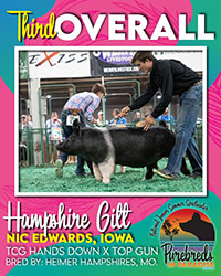 HANDS DOWN is a repeat mating to the Grand Champion Hamp Gilt 2020 Midwestern shown by Rodibaugh.