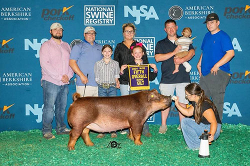 Sired by the $290,000 Co-Record Selling Duroc Boar. Mother was the Reserve Grand Champion Gilt Overall and Champion Duroc at the 2023 NJSS. The mother of these boars was out of Laird's litter of the year nominee. The 112s and a littermate to the Bobell gilt that was Grand Overall at the Exposition.