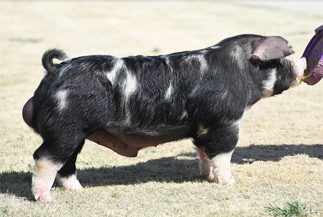 - Has the bone, stoutness and power of his sire - DW but is taller fronted and cleaner necked.