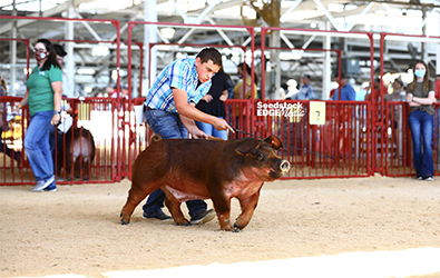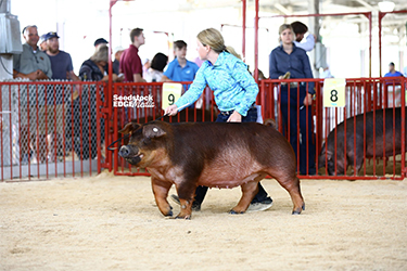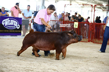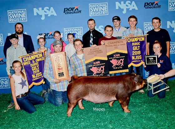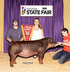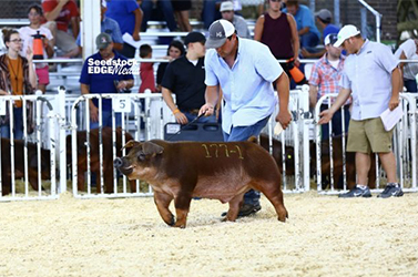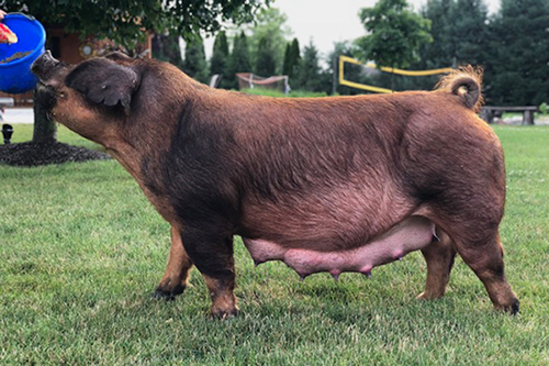 MAXIMUS BREED: Duroc REGISTRATION NUMBER: 406239008 BRED BY: Cody Maxwell & Family OWNED WITH: Kilmer Swine Farm STRESS: Negative NOTES: The interest has been incredible on this boar since the Exposition!! Where do we start with this one besides the fact we think he is big time good!!! Maximus is the perfect boar to sire trendy barrows, gilts and boars that have the look, mass and power to win the big shows. Maximus is sired by our Unforgettable boar that is making quite a run in his first pig crop siring the 4th Overall Gilt at the Exposition Jr. Show and numerous jackpot show champions so far. Great boars come from great sows and Maximus is packed full with a winning pedigree!! His mother was the Reserve Champion Gilt Overall & Champion Duroc Gilt at the '17 WPX Jr. National. She raised the Grand Champion Overall Gilt & Champion Duroc Gilt at the '18 NJSS. His Granddam is a littermate to the $50,000 Grand Champion Duroc Boar at the '16 WPX. His Great Granddam was the Grand Champion Overall Gilt at the '14 Illinois State Fair and Great Great Granddam was a class winning gilt at both the '12 Illinois State Fair and '12 NJSS. Maximus is the heaviest boned, biggest legged, stoutest Unforgettable son that we have seen. He is pulled apart and massive coming at you and leaves you with that same width and authority. His back shape and spread up high is incredible while still maintaining perfect soundness and flexibility.