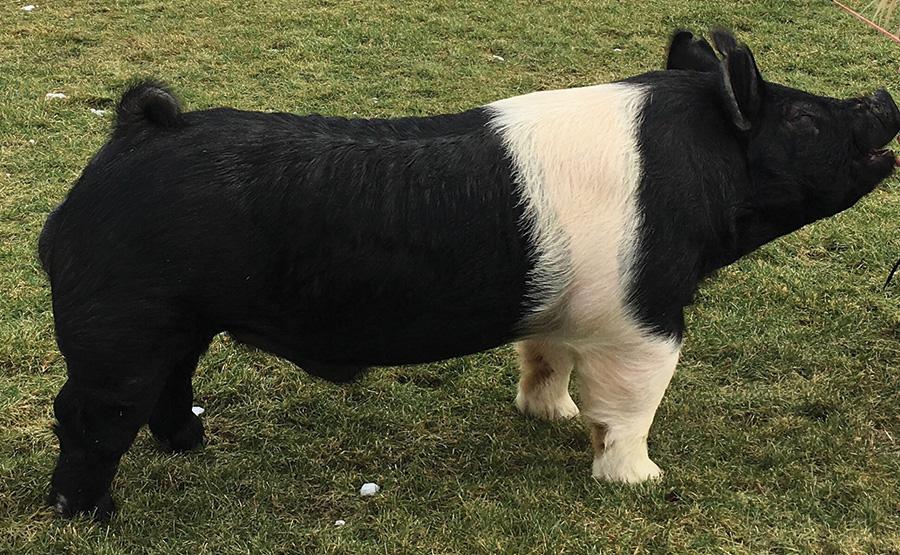 NEW RECRUIT BREED: Hampshire NOTES: Just sired the Grand Champion Hampshire Barrow 2017 Illinois State Fair Open Show Mother was the New Recruit’s sire, Harbaugh is a No Debate x Point Taken. No Debate was the $90,000 Champion Hampshire Boar 2013 Indiana State Fair. Harbaugh’s mother was the 2012 Grand Champion Hampshire Gilt at the WPX Jr. National and the Grand Champion Hampshire Gilt at the Summer Type Conference. To say we are excited to have NEW RECRUIT here at Top Cut would be an understatement!!! New Recruit was the boar Joostberns were planning on keeping at home to keep improving on what Harbaugh has already done on their sow herd. New Recruit has a monster chest floor and is super square all the way to the ground. Huge feet, BIG square toes and also great on his pasterns. Bone is unreal, big square top with an up headed show look. He is so flexible and loose jointed and moves so freely on any surface .This boar is a power hog that is more moderate framed than his brother. Use this guy with confidence!! |