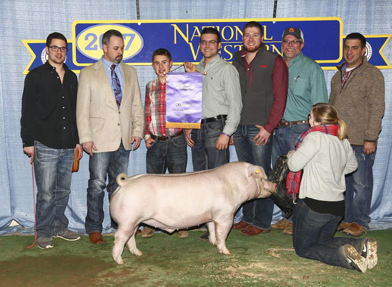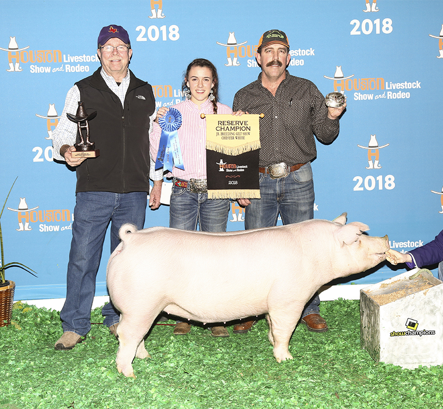 ![]() Reserve Champion Chester Gilt 2018 Houston Livestock Show Bred by Chad Day Showpigs Sired by Over Turn |