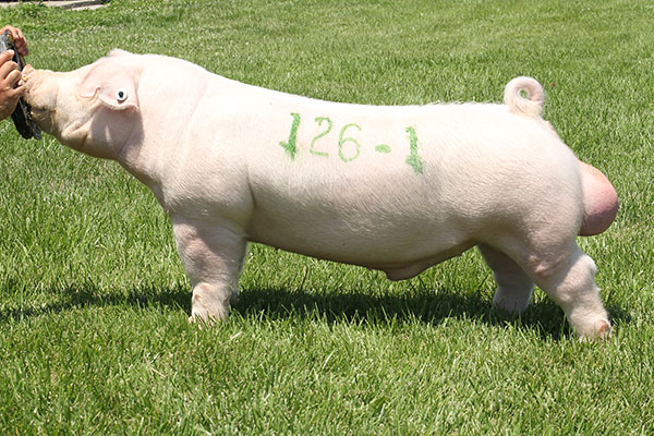 Class Winning Boar 2024 CPS Summer Type Conference Rest Easy in person is very impressive! He is tall fronted and good built but still offers back shape, heaviness of structure and center body. He offers power yet still is long necked and good looking.