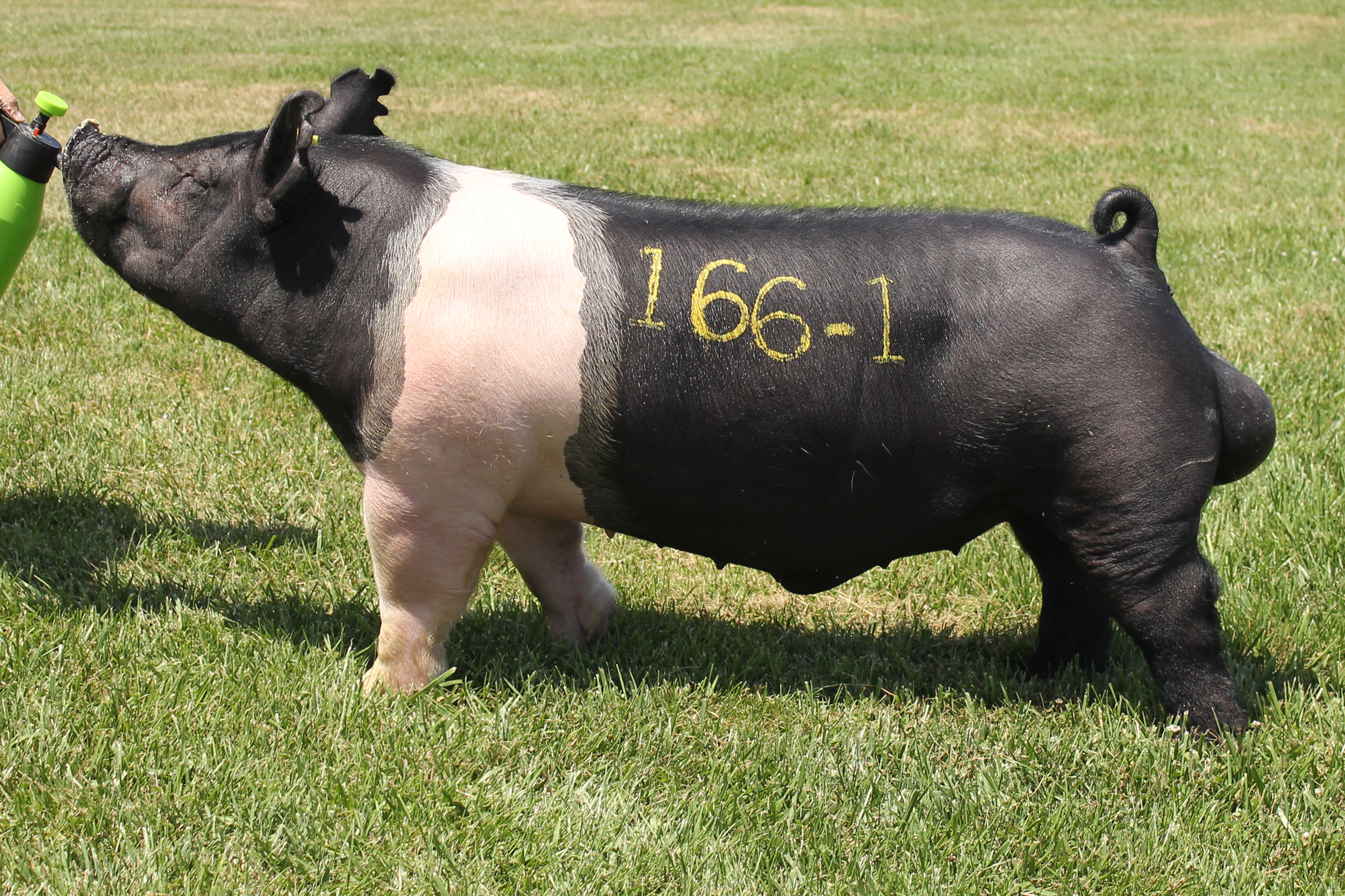 BREED: Hampshire STRESS STATUS: Negative REGISTRATION NUMBER: 499416007 EAR NOTCH: 44-7 PASSED NEW BREED PURITY TEST: 92% BRED BY: Devin Goehring, WI OWNED WITH: Kilmer Swine Farm
