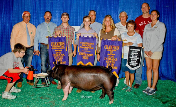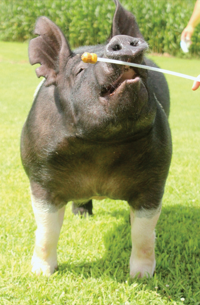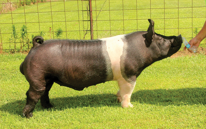 NOTES: Sired: Littermate gilt was Champion Bred & Owned Hamp Gilt & Class 1 Winner at the 2016 World Pork Expo You can drive many miles across the country looking but we challenge you to find a trio of young Hampshire boars better than Stop the Madness, Stranded and Bounty Hunter!! When we saw this boar this spring we loved his look, design and power. Stranded has matured just like we had hoped and is a big time breeding piece!! With the success of Exile, we knew we had to get a great son. No question that we found him here. Stranded has more look, design and length of neck than his sire while still having all that power, bone and muscle shape. This was a deep consistent litter and Stranded has been a stand out from day 1. We believe Stranded will sire champion barrows and gilts than can win at the highest level. His sire, Exile was one of our best and his mother is a proven powerhouse being a littermate to No Debate!! |